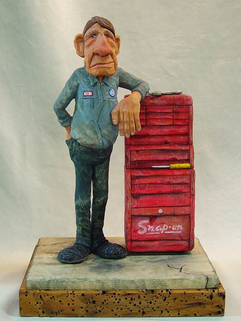 Randy has carvings in private collections around the US, as well as the CCA Signature Collection on display at Peter Engler Designs in Branson, MO. He has given caricature carving and painting seminars across the United States and served as judge at a variety of woodcarving shows throughout the country, including the CCA National Caricature Carving competition and the International Wood Carvers Congress.